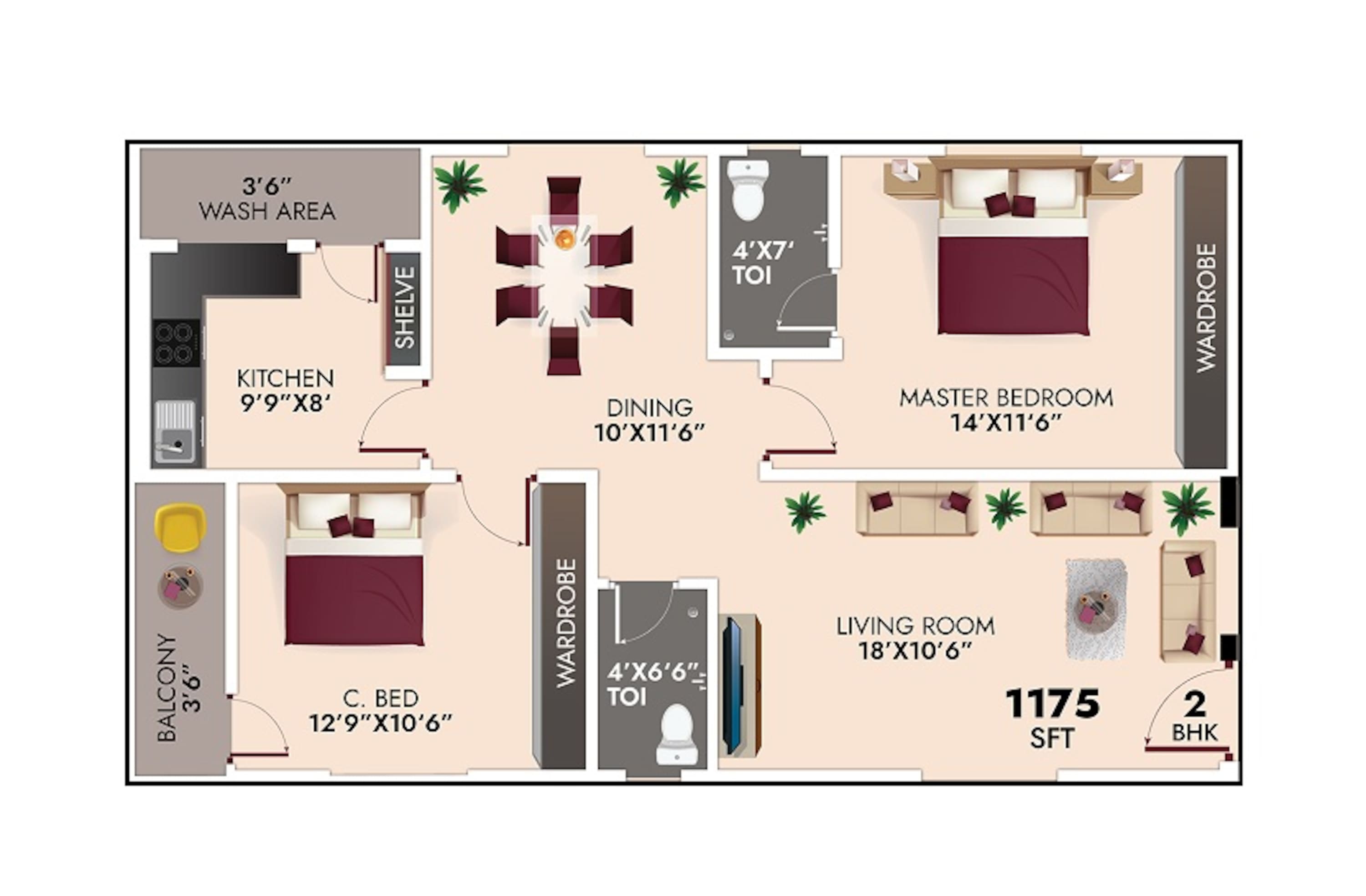 56 units - 2 BHK, 28 units - 3 BHK in 1 tower