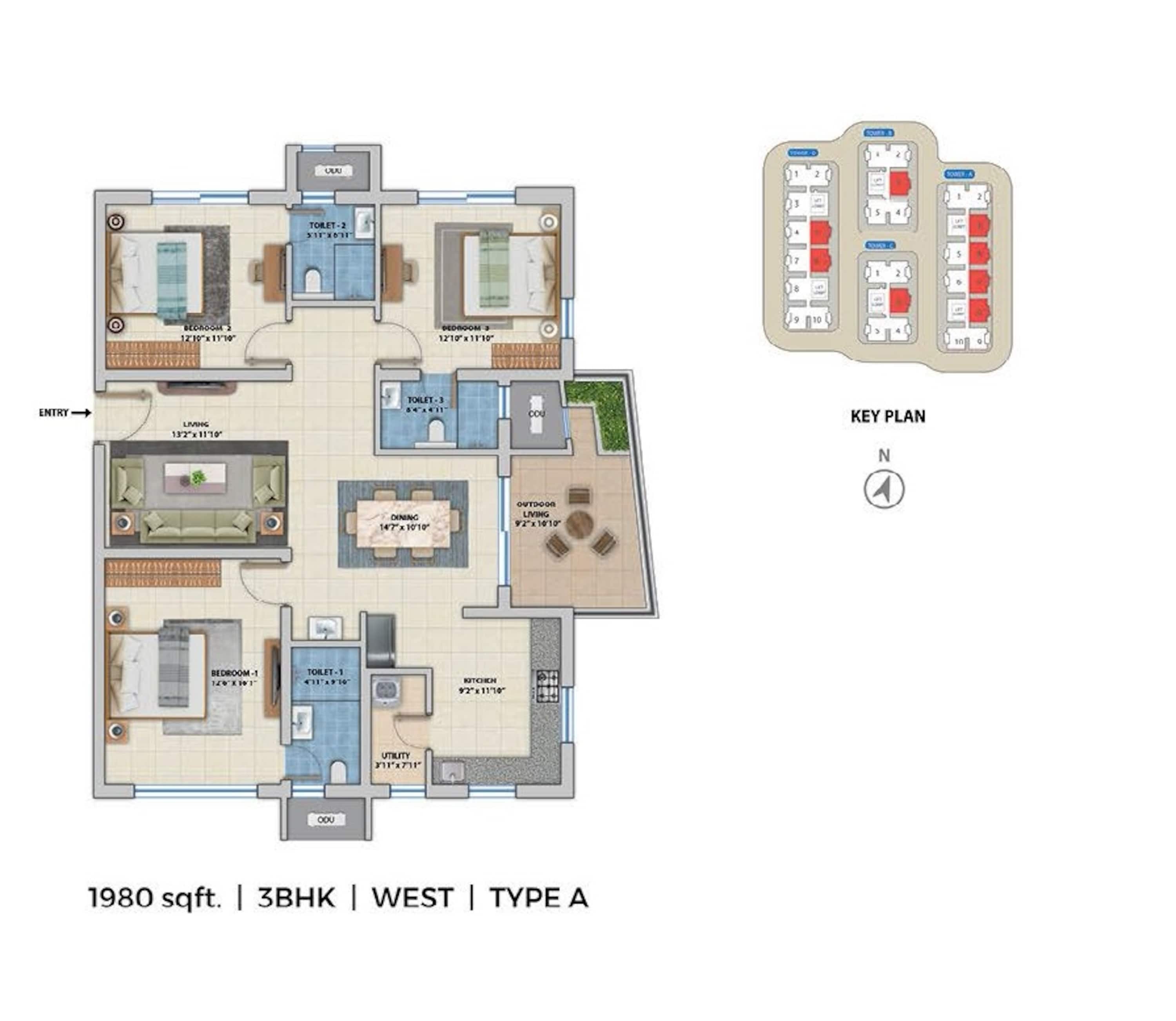1172 units - 3 BHK in 4 towers