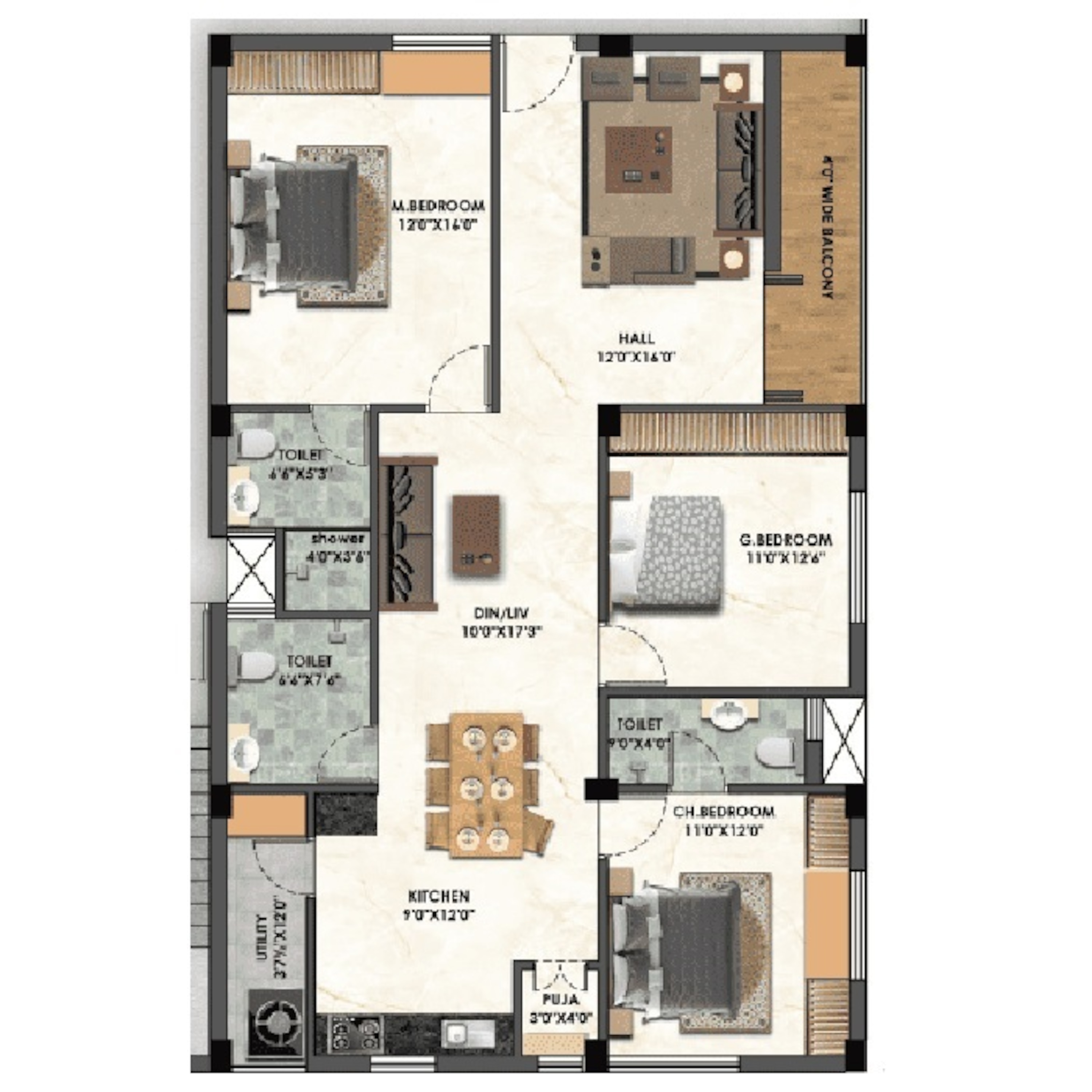 G+12 Floors 1 Tower