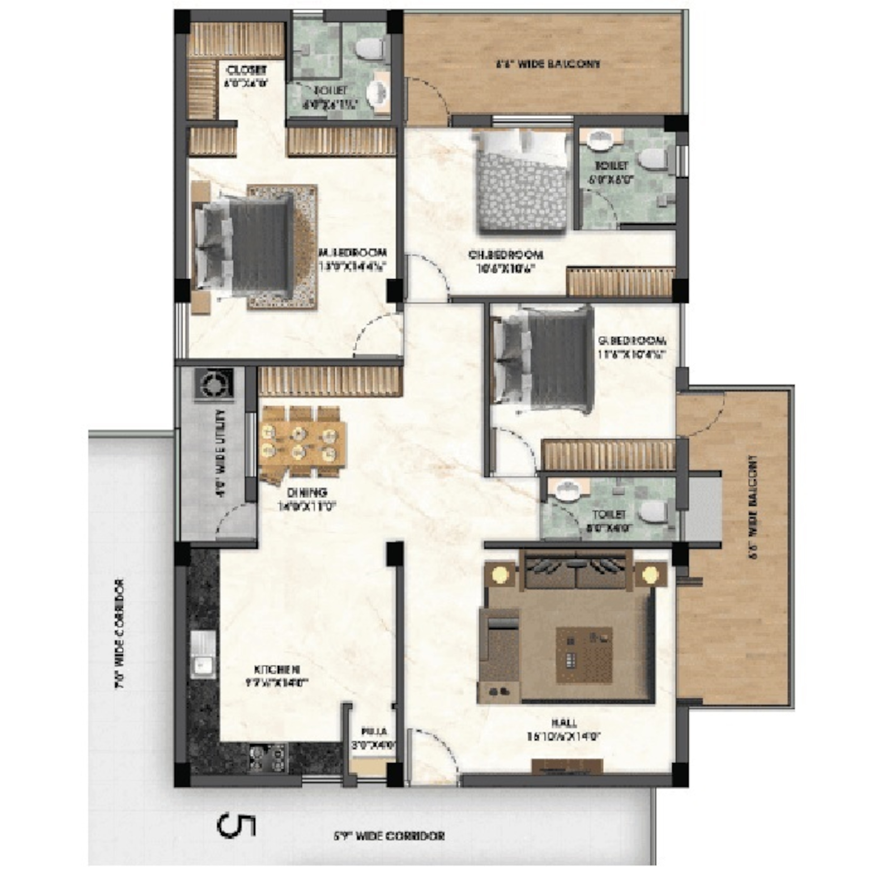 45 units - 2 BHK, 23 units - 3 BHK in 1 tower