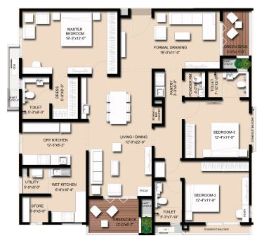 481 units - 3 BHK, 148 units - 2 BHK in 6 towers