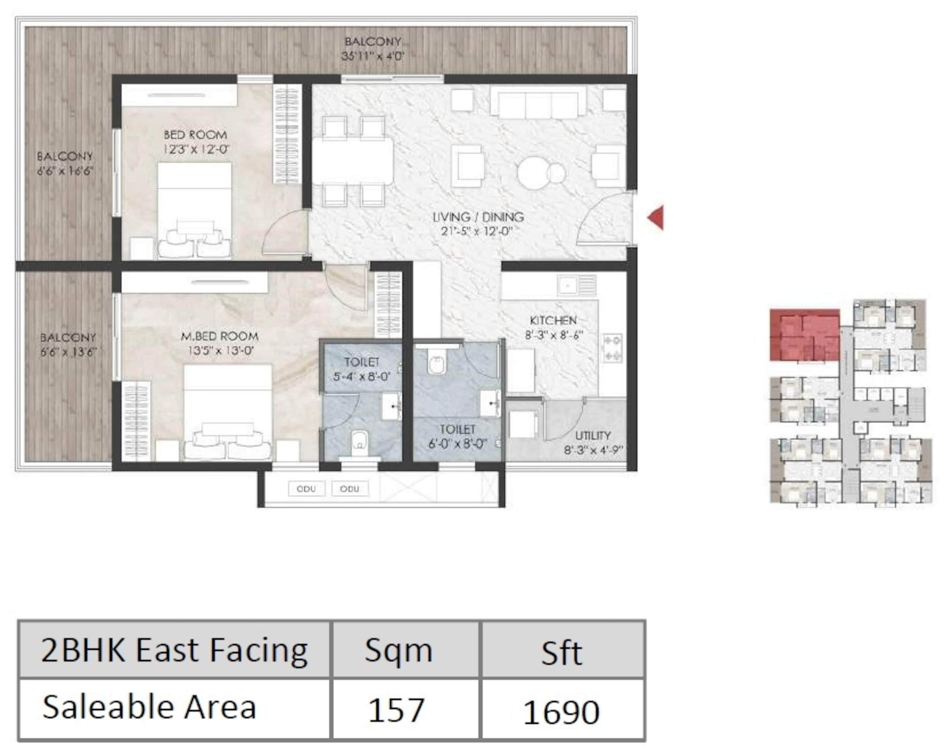 388 units - 2 BHK, 582 units - 3 BHK, 847 units - 4 BHK in 8 towers