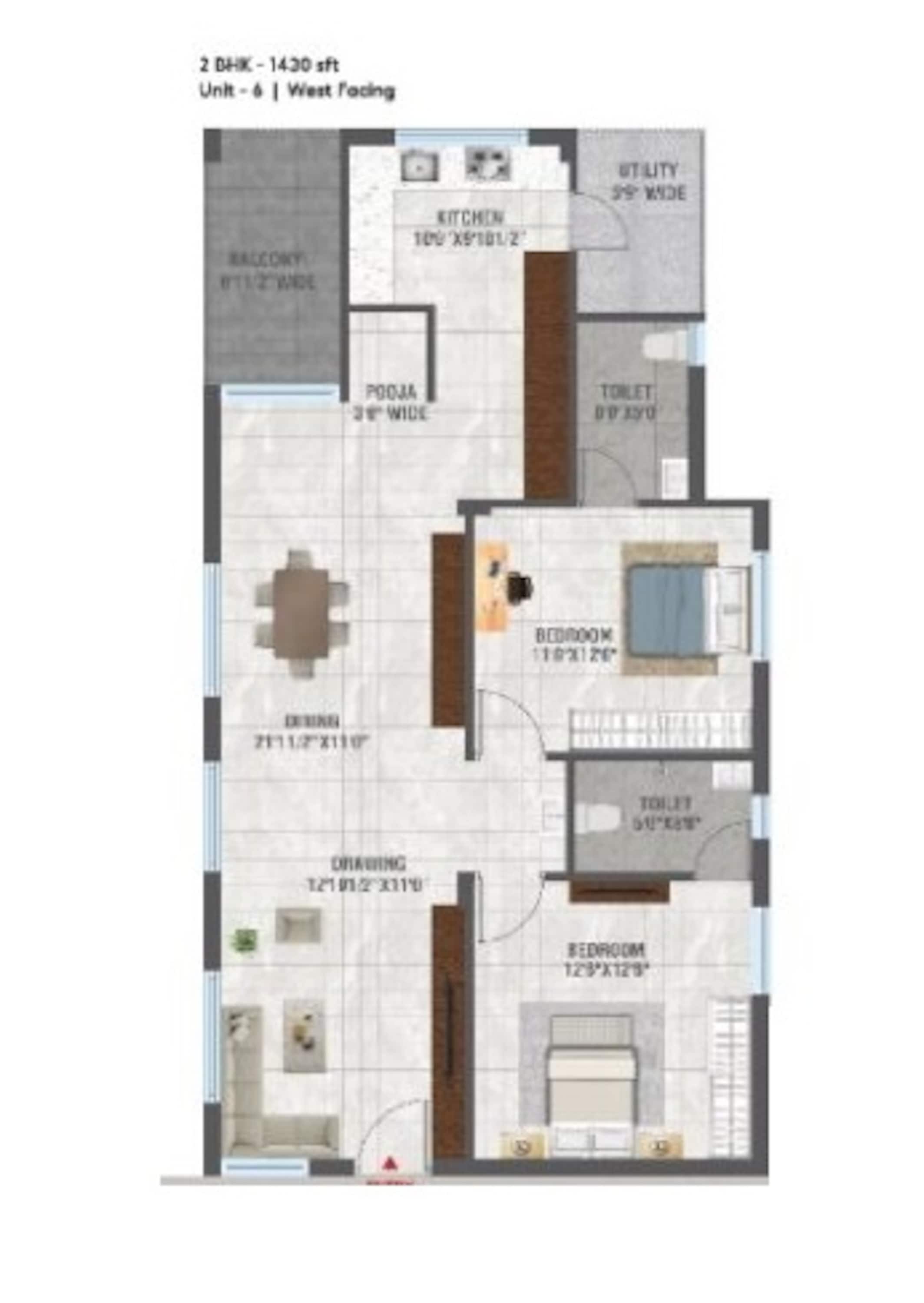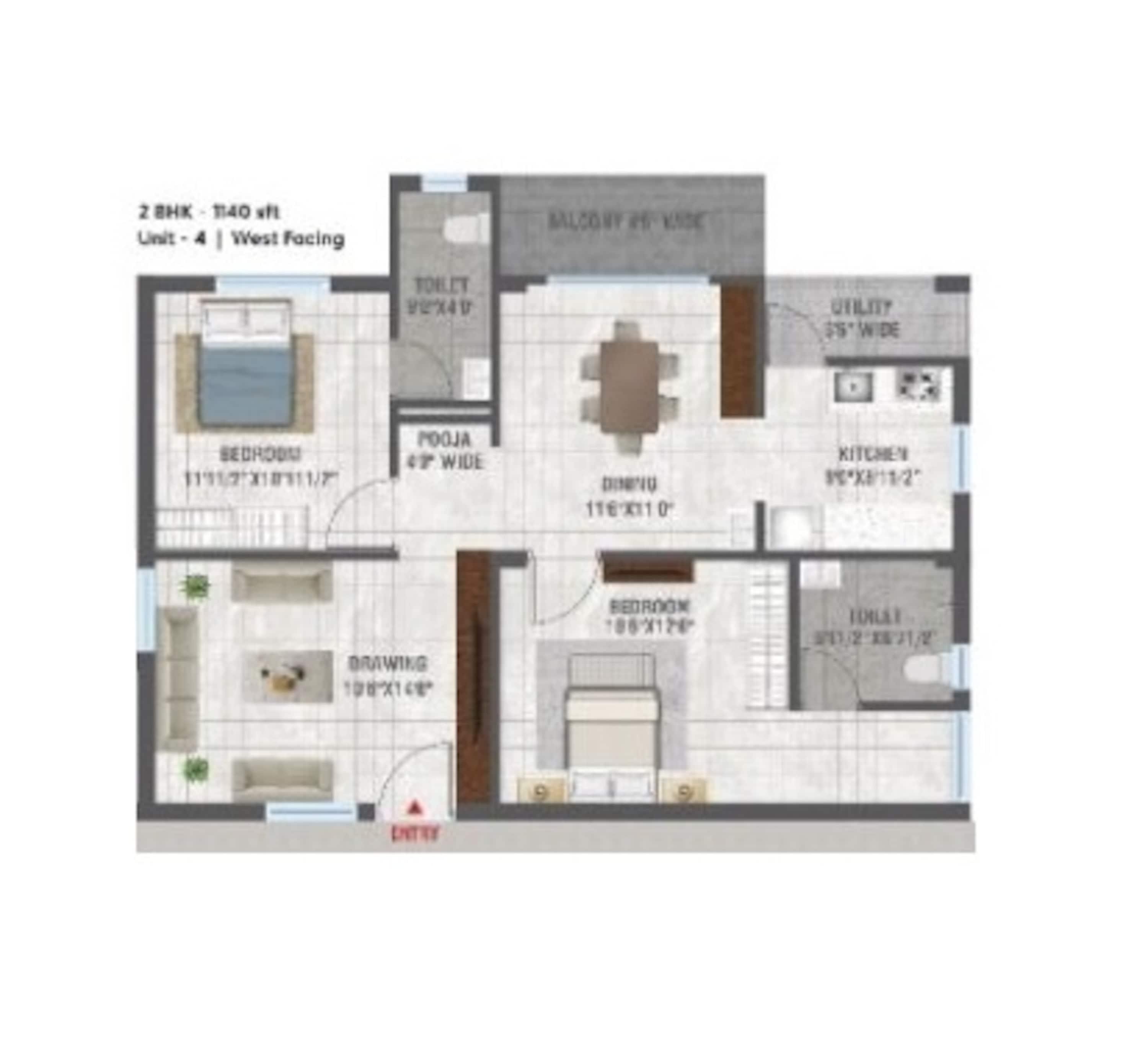 20 units - 2 BHK, 10 units - 3 BHK in 1 tower