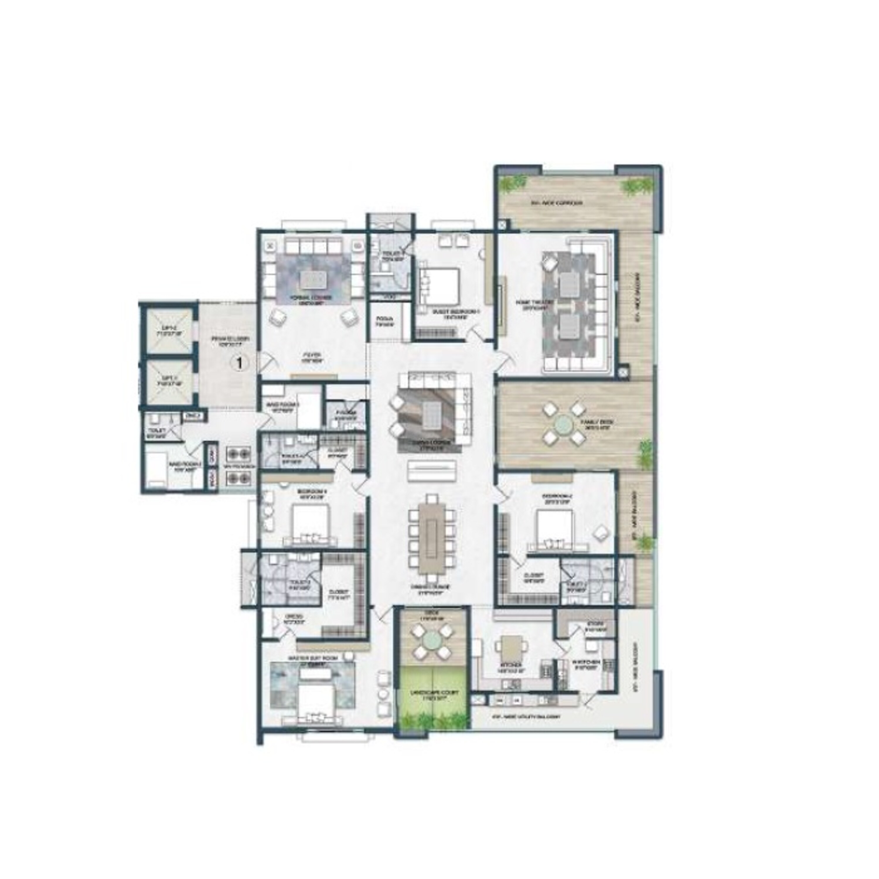 4 units - 3 BHK, 175 units - 4 BHK in 1 tower