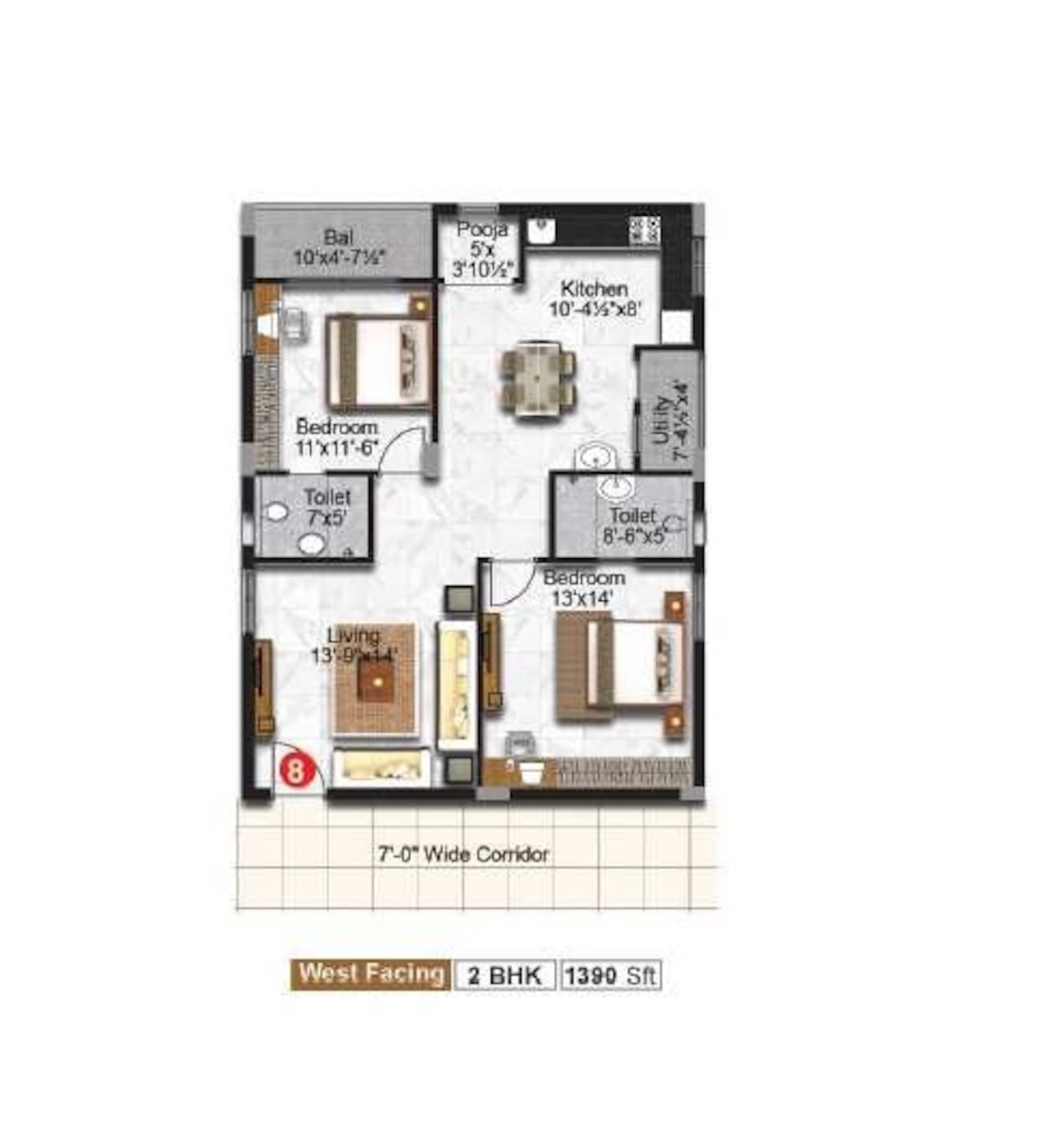70 units - 2 BHK, 39 units - 3 BHK in 1 tower