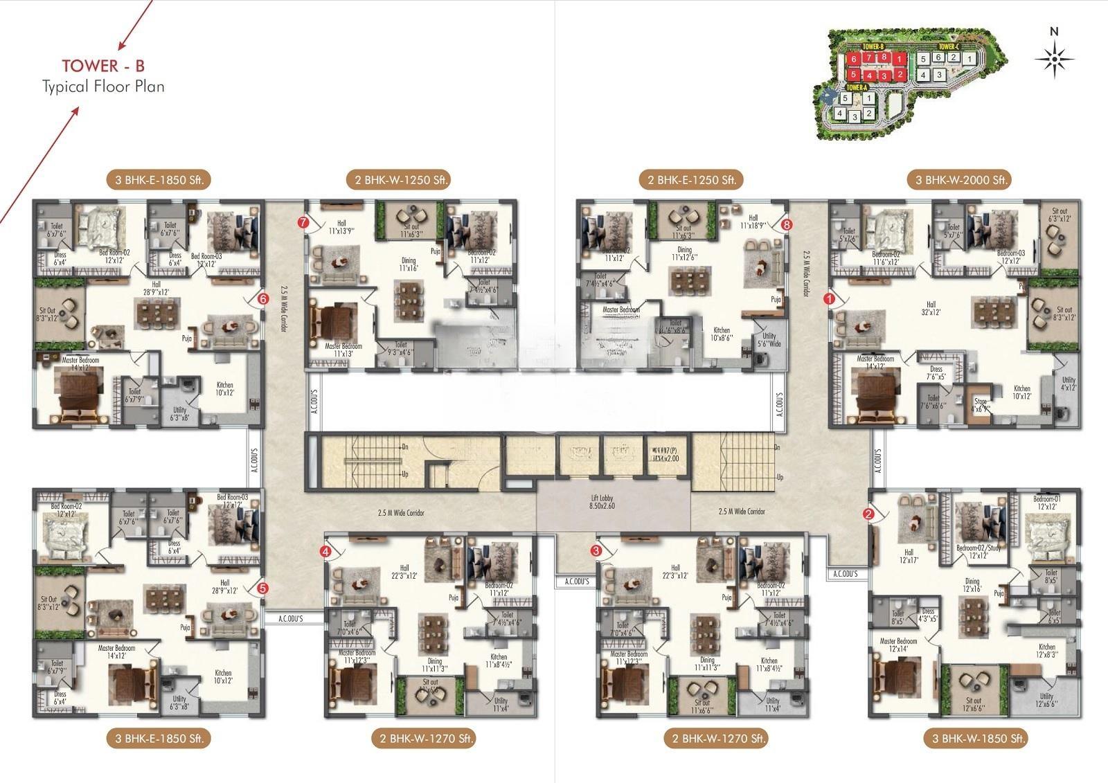 102 units - 2 BHK, 221 units - 3 BHK in 3 towers