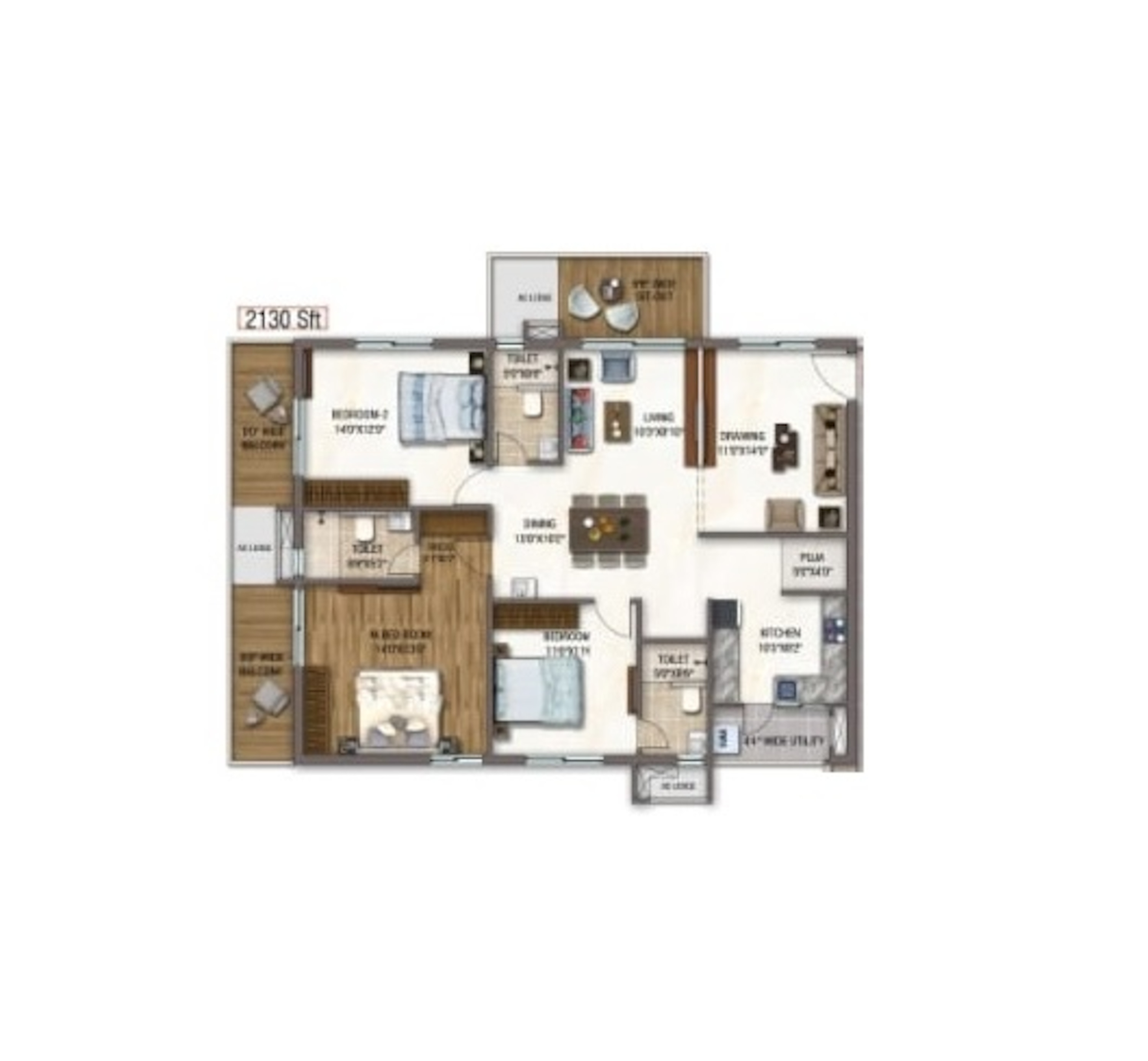 22 units - 2 BHK, 146 units - 3 BHK in 1 tower