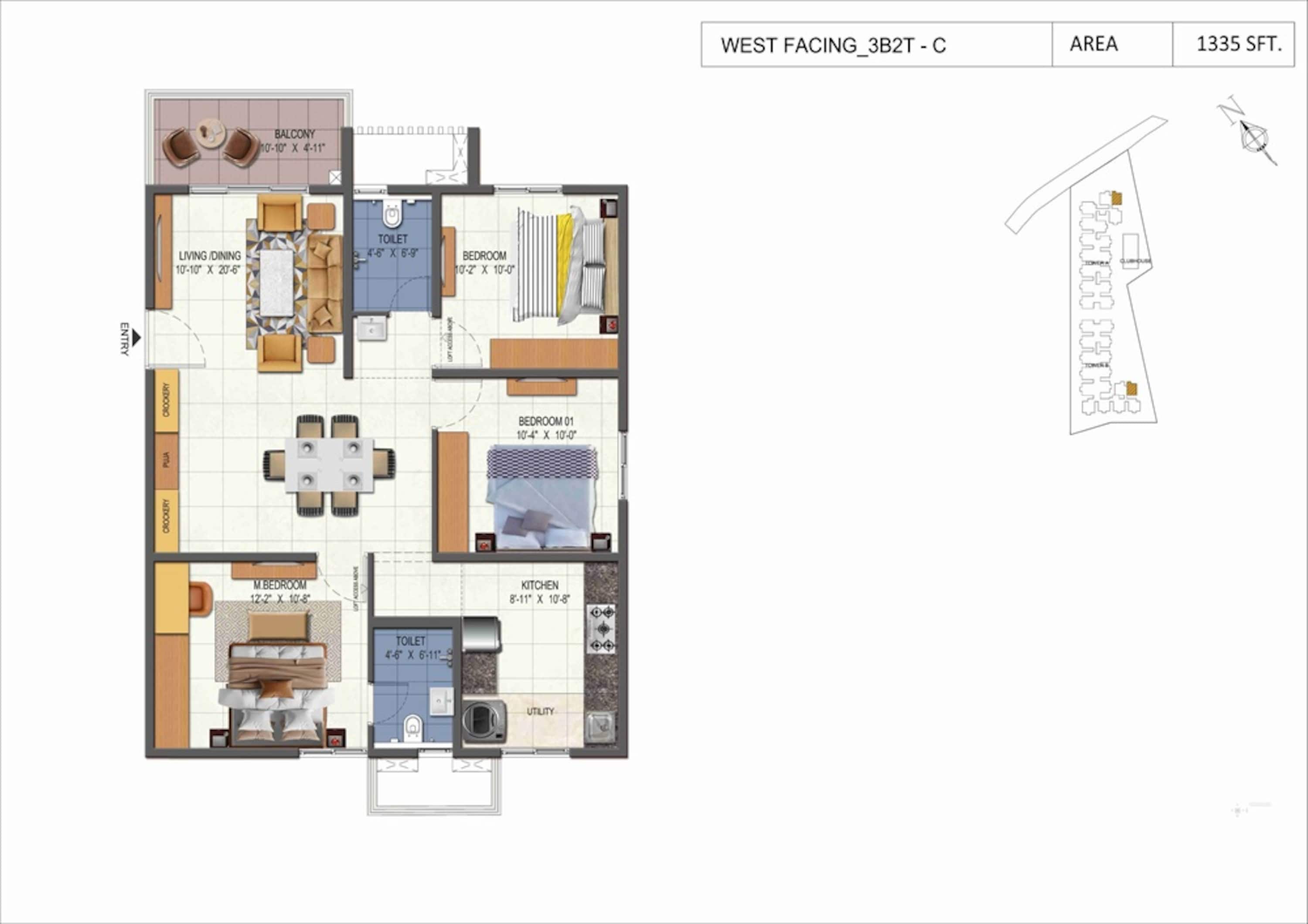 363 units - 3 BHK, 4 units - 2 BHK in 2 towers